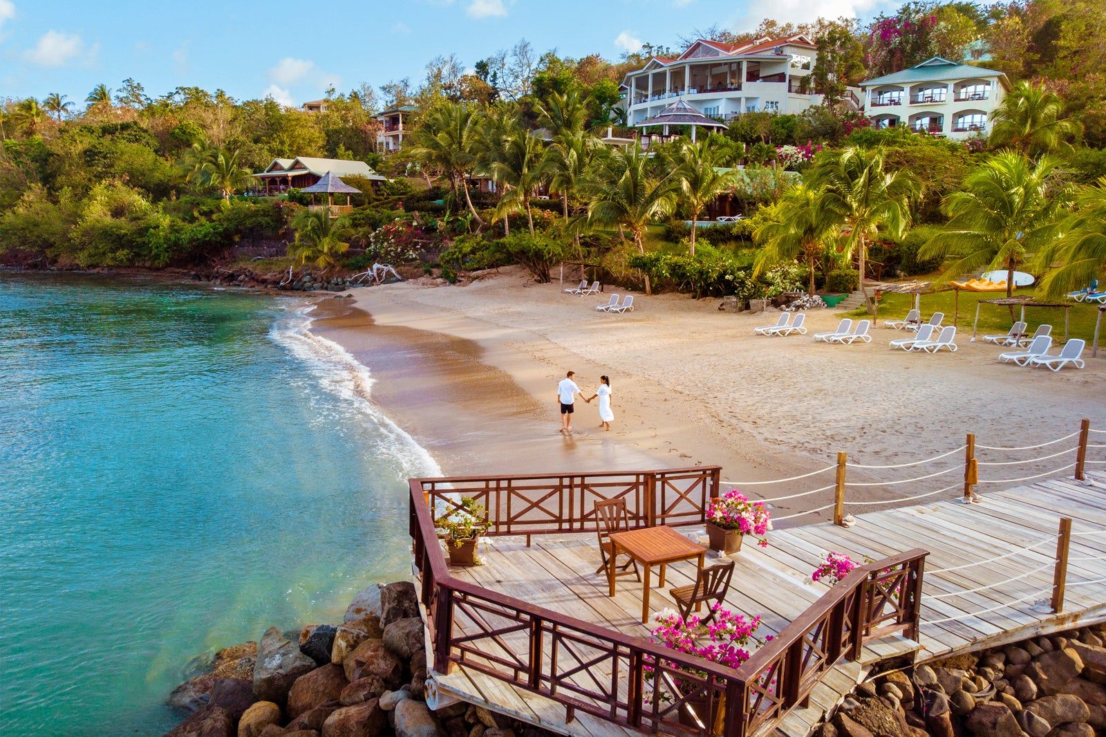 Reduit Beach on the northern end of St. Lucia offers a long stretch of brilliant gold sand and turquoise waters with amazing views of Pigeon Island just offshore. The island is also famed for Splash Island Water Park, where you and your beloved can navigate inflatable obstacle courses right on the water, including a climbing wall, monkey bars, slides, rockers, hurdles, and even water volleyball courts..