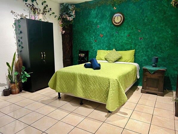 Not a speakeasy or as magical as advertised. The “breakfast” that is included was three cold hard pancakes topped with apples and sprinkles or a soupy “smoothie bowl” akin to Smurf diarrhea topped with dry oats and even dried coconut shards, you have a “choice” of a paltry cacao tea or America coffee. Though the breakfast menu advertised at the attached Alquemista Cafe had more options, I was informed by management only vegan and vegetarian options are offered currently in the included breakfast. I found what was presented to be inedible and the Guatemalan Wizard option to be a joke as a traditional Chapin option. The tin roof of the room is so thin when the neighborhood cats jump on it it sounds like a boulder dropping so good luck getting a good night rest. Though the room is decorated whimsically the bed is stiff and not in a magical way. The water in the shower did get hot quickly and for the whole shower. Management was responsive via Facebook messenger but their on site staff lacked the initiative and understanding needed to make the experience enjoyable. Would not recommend if you are a fae enthusiast, coven Queen, or a merman in need of respite. Mere mortals would do better elsewhere also.